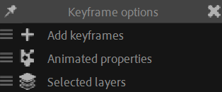 By default, Duik adds keyframes on all animated properties it’ll find, but you can set it to only add keyframes on explicitely selected properties if you prefer.
