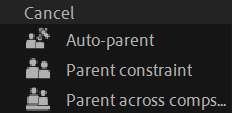The Parent Constraint works like standard After Effects parenting, except that the parenting can be animated, so that a child layer can change its parent (or combine multiple parents) at any time. This is very useful to temporarily parent an object to the hand of a character for example.