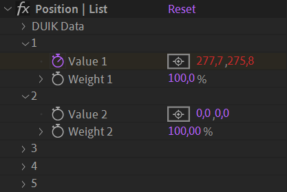 If an expression was already assigned to the property, it is automatically copied into the first slot of the list, along with the existing keyframes.