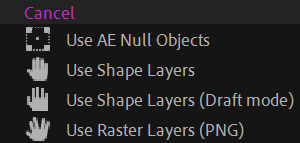 There are four different modes to create controllers in Duik, which can be chosen on top of this panel.