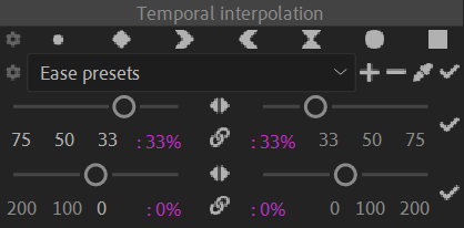 The second part of the temporal interpolation section is a keyframe ease editor, used to quickly adjust the keyframe ease on selected keyframes very quickly.