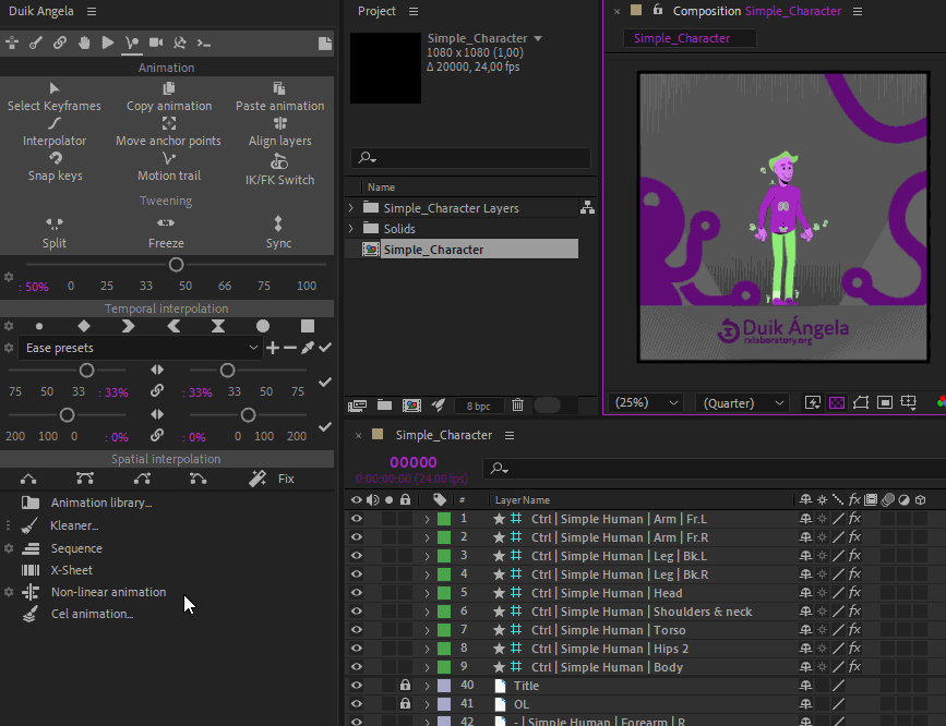 - Finally, if Duik did not find anything else, it will rig all transform properties of all layers.