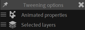 The first part of the animation panel is made of some tweening tools, especially, but not only, useful during the usual first steps of the animation process, blocking*, when animating with hold keyframes1.