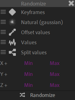 If you split the multi-dimensional values, three axis are shown; you can just ignore the third axis if you’re randomizing a 2D value. In case of colors, the three axis represent the Red, Green and Blue channels, and are ranging from 0.0 to 1.0 (or more in case of 32-bits-per-channel projects).