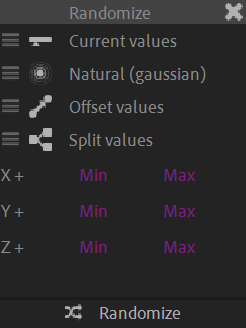 - The Natural (gaussian distribution) mode feels more realistic and natural; when used in the position of layers for example, the layers will be distributed around the center of the original position, in a circular area. But with this mode, the values may jump further away than the exact amplitude.