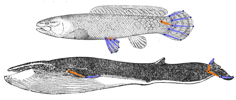 Fins of fishes and whales come in very different shapes, but with Duik you can use a single and very simple Fin armature to rig any kind of fin.