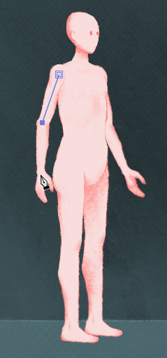 [G], and without any layer selected, click on the location of the bones you wish to create, from the root to the tip of the limb. This will create a new shape layer with a path, each vertex of the path located at a joint of the limb. - Keeping this new path selected (do not change the current tool nor click anywhere else), create the new armature with Duik.