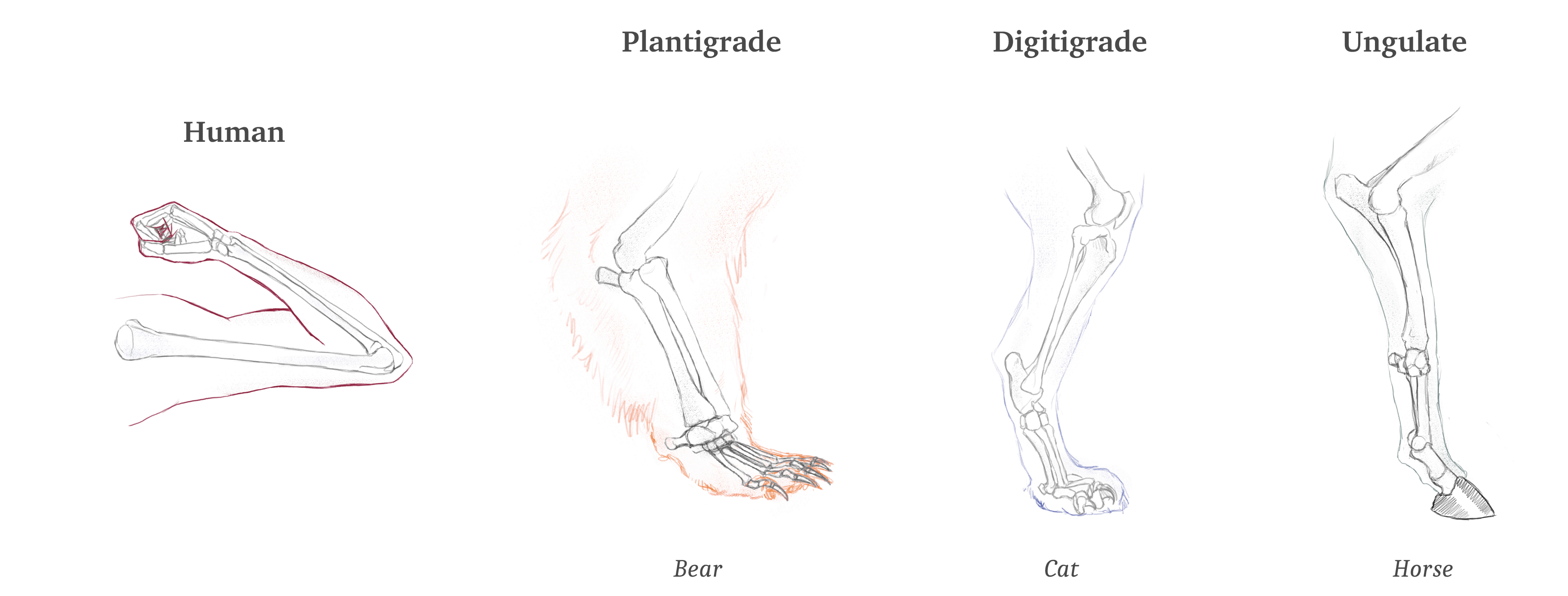 | Tetrapods which walk on their fingers. | Dogs and all canines, cats and other felines, dinosaurs, walking birds… | Human friends. | |