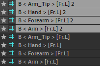 If you duplicate bones with After Effects ([Ctrl] + [D]), Duik won’t be able to correctly rig them later.