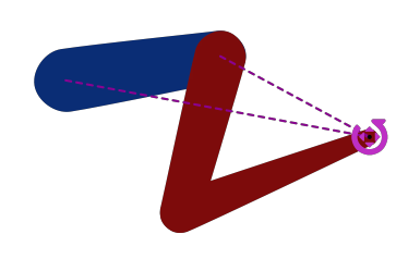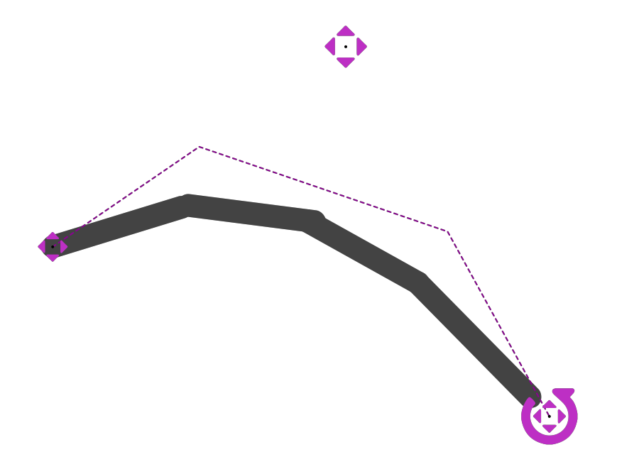 When animating the position of the controller or the position of the first layer (or any of its parents), the limb rotates and bends automatically. With this IK setup, Duik also controls the position of the limbs to be able to stretch (or shrink) them, and allow for fore-shortening effects for example.