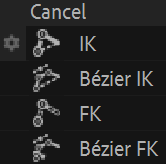 - Bézier IK, which is a special kind of IK you can control with several controllers to define the curve of the limb, as you would for a Bézier path using points and tangents.