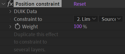 When a layer is constrained, its rotation and position are not locked; you can still edit and animate them manually and offset the constrained value.