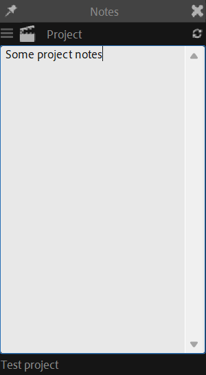 Any text typed in the Composition mode are saved as a comment on the active composition. These comments can be viewed in the project panel, but it’s easier to view and edit them from this note editor. When changing the active comp, click the refresh button to get the new note.
