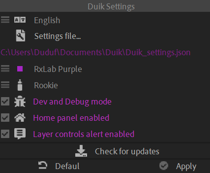 - You can change the location of the file where Duik stores its settings. This may be useful to synchronize it across different computers for example.
