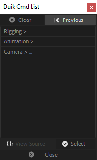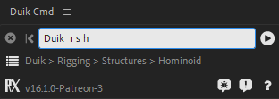 The Duik Cmd panel provides an command line interface (CLI) to Duik.